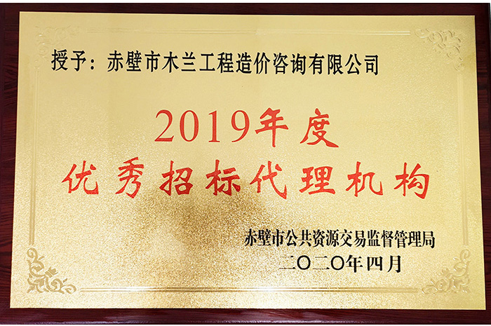 2019年度优秀招标代理机构荣誉奖