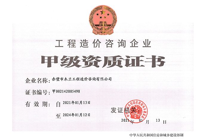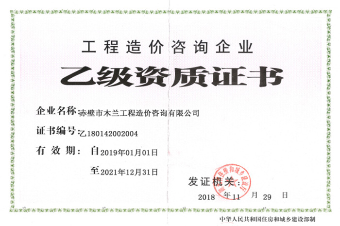 造价咨询乙级资质证书